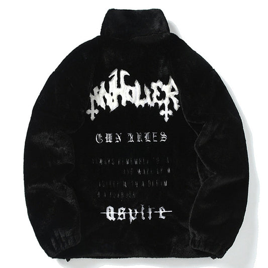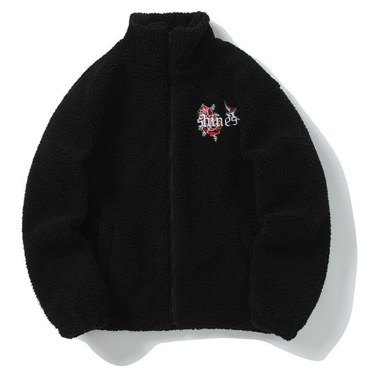 Concentrate Collective Streetwear -Sheep Fur Flower Embroidery Zip Up Thermal Jacket