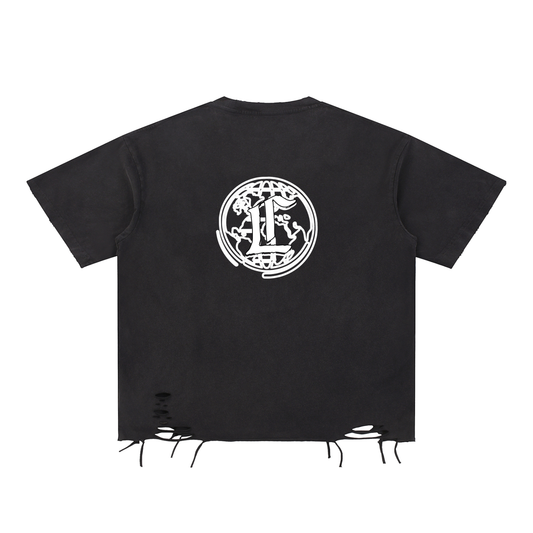 Concentrate Streetwear- CCS - 270gsm Snow Washed Raw Ripped-Hem T-Shirt