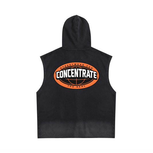 Concentrate Streetwear - The Real - 240gsm Vintage Washed Zip-Up Hooded Tank Top